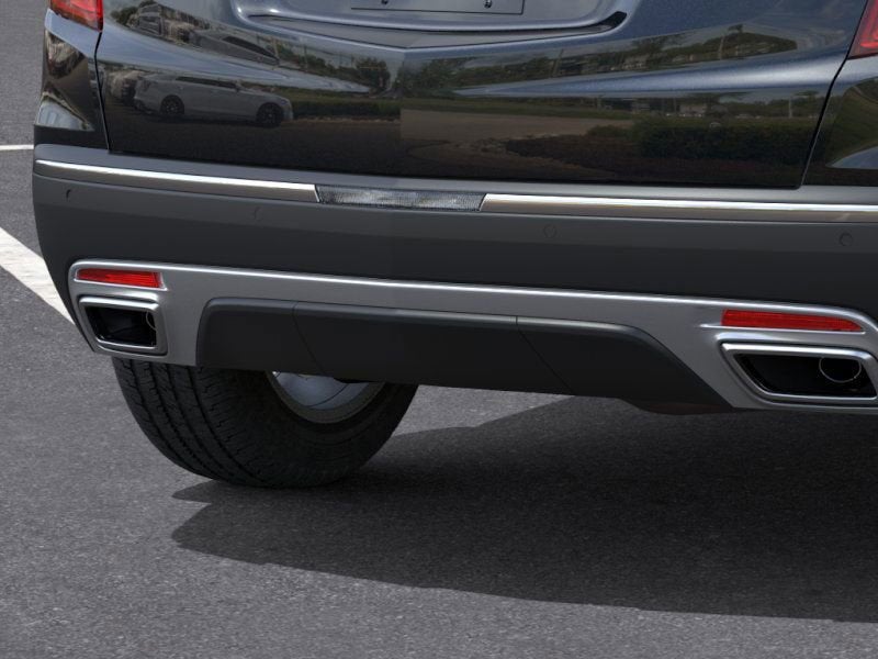 - Opens or closes when the system senses the key fob and the driver extends their foot under the left-hand side of the rear bumper over an image of the Cadillac Crest projected under the vehicle