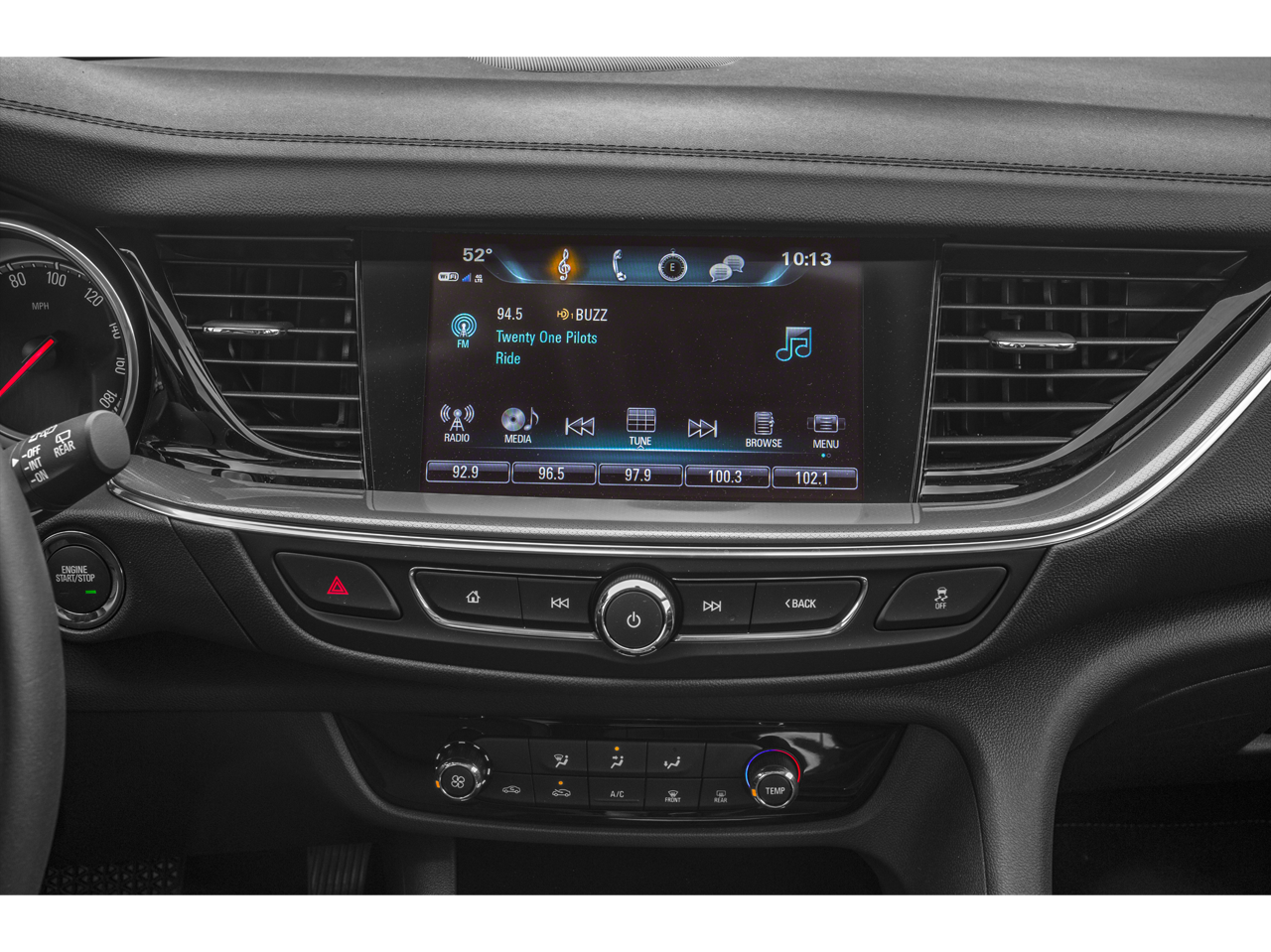 Stepping inside, you'll be greeted by a cabin that exudes refinement and attention to detail. Heated front seats, a heated steering wheel, and a power-sliding panoramic moonroof with a power sunshade provide unparalleled comfort and convenience, while the Buick Infotainment system with Apple CarPlay and Android Auto integration keeps you connected and entertained.